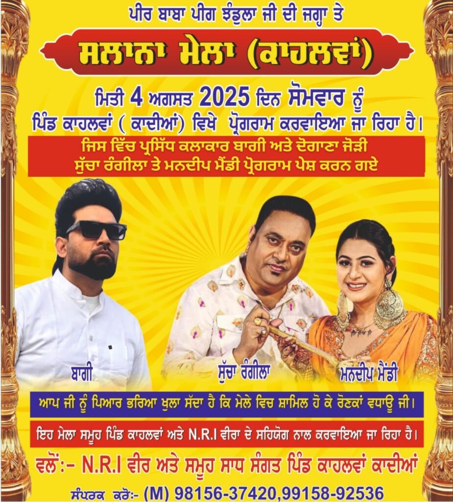 Mela ਸਲਾਨਾ ਮੇਲਾ: ਪੀਰ ਬਾਬਾ ਪੀਂਘ ਝੰਡੁਲਾ ਜੀ ਦੀ ਜਗ੍ਹਾ ਤੇ – 4 ਅਗਸਤ 2025 creativeranjodh@gmail.comJuly 26, 2025